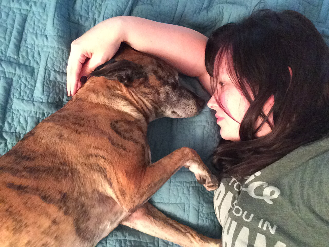 Finally, the magic trick: scenting! Dogs have an incredible sense of smell. Once we had a good idea of where Lily was camped out we set up a little hub that we hoped to lure her to. There was a patch of pine straw next to some air conditioner units where she was seen over the weekend. We put one of my unwashed sweatshirts in the pine straw along with a pair of my used socks. Clothing that smells strongly of you is key. We also set out a large bowl of water, but no food. We didn’t want any other animals to be drawn to the food and risk Lily losing control of the territory. Finally, we marked the area with urine. We had our other pup pee all around the area to establish her scent for Lily. Then we sprinkled my husband’s urine all around the area. We also made trails of the urine coming from all directions, leading to the hub we built for her. Yes, we were the ones walking around Southside with the water bottles full of urine. But I would do it again 100 more times if I had to, because it brought Lily home! The next morning as the sun was rising, we drove over to the spot and there she was, sleeping! Right in the spot we built for her! Once she saw us she ran right to us and has been cuddled up next to us ever since.